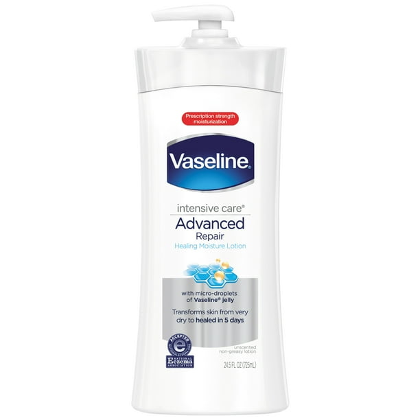The result is a body lotion that deeply moisturizes to heal very dry skin in only 5 days. 25 3. Vaseline Intensive Care Advanced Repair unscented lotion weve combined healing micro-droplets of Vaseline Jelly and our highest levels of moisturising glycerine.